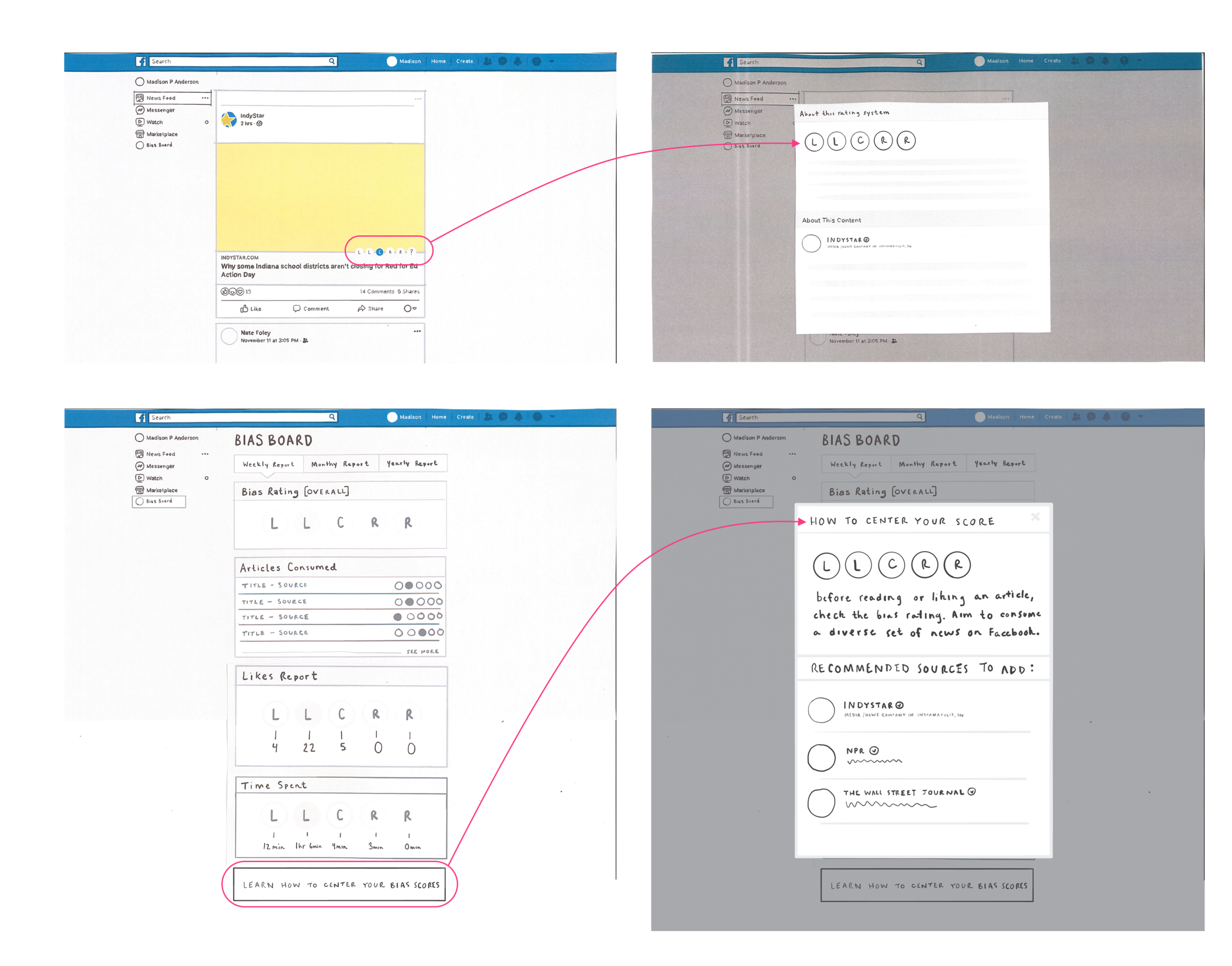 From our expert evaluations: Every evaluator felt that our solution was well thought out and appropriate to address this complex problem. With that said, each of our expert evaluators raised questions about building trust and providing transparency with users. They felt that in order for the solution to be effective in the long term we would have to provide more information about the AllSides Rating methodology. They felt that users would be skeptical or resistant to trusting Facebook in providing bias ratings and that it would be very important to build user’s trust in AllSides and effectively communicate the non-partisan methodology used to generate the bias ratings.