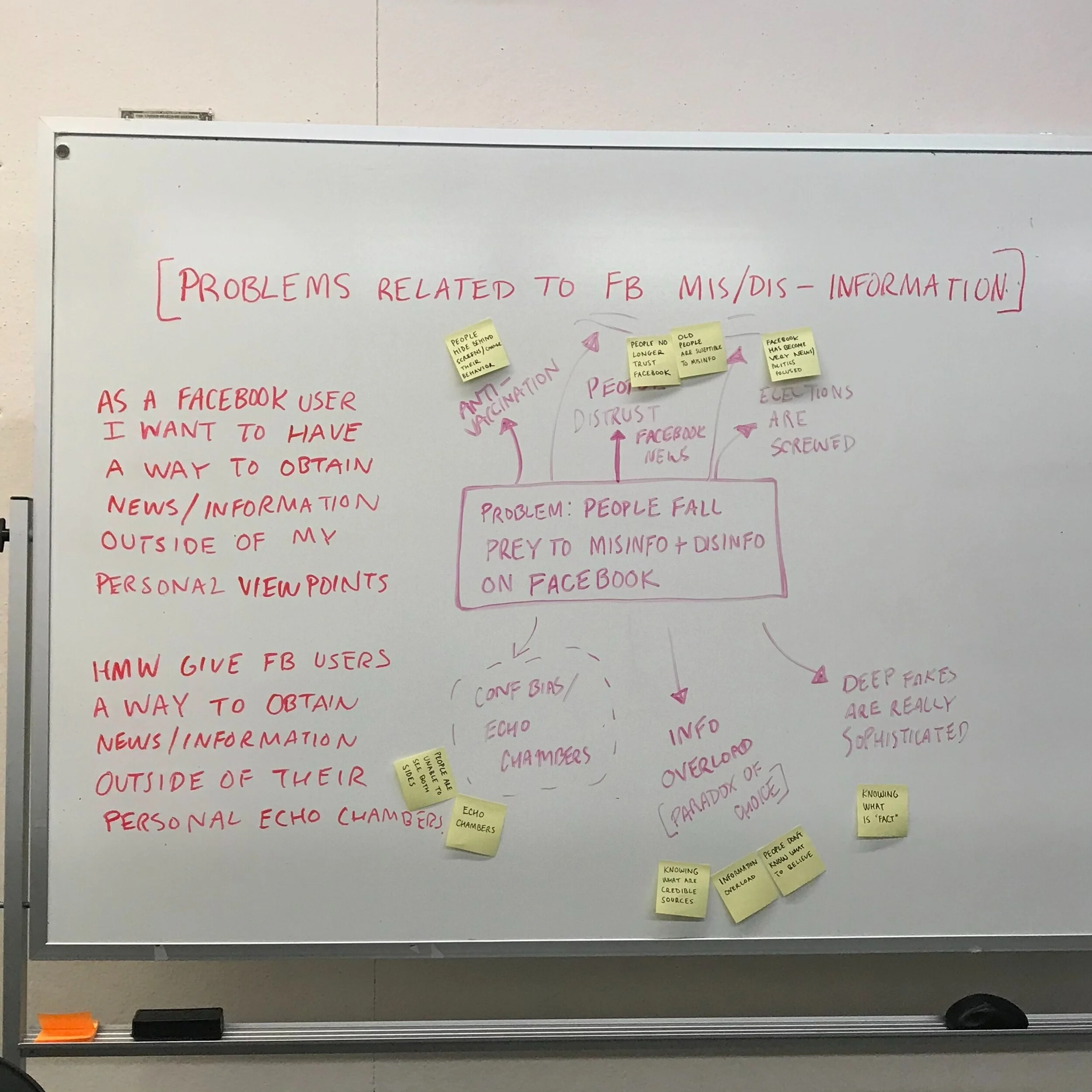 I worked with my teammates to conduct research and explore and define the problem space. At my suggestion, we chose to focus on Facebook specifically.